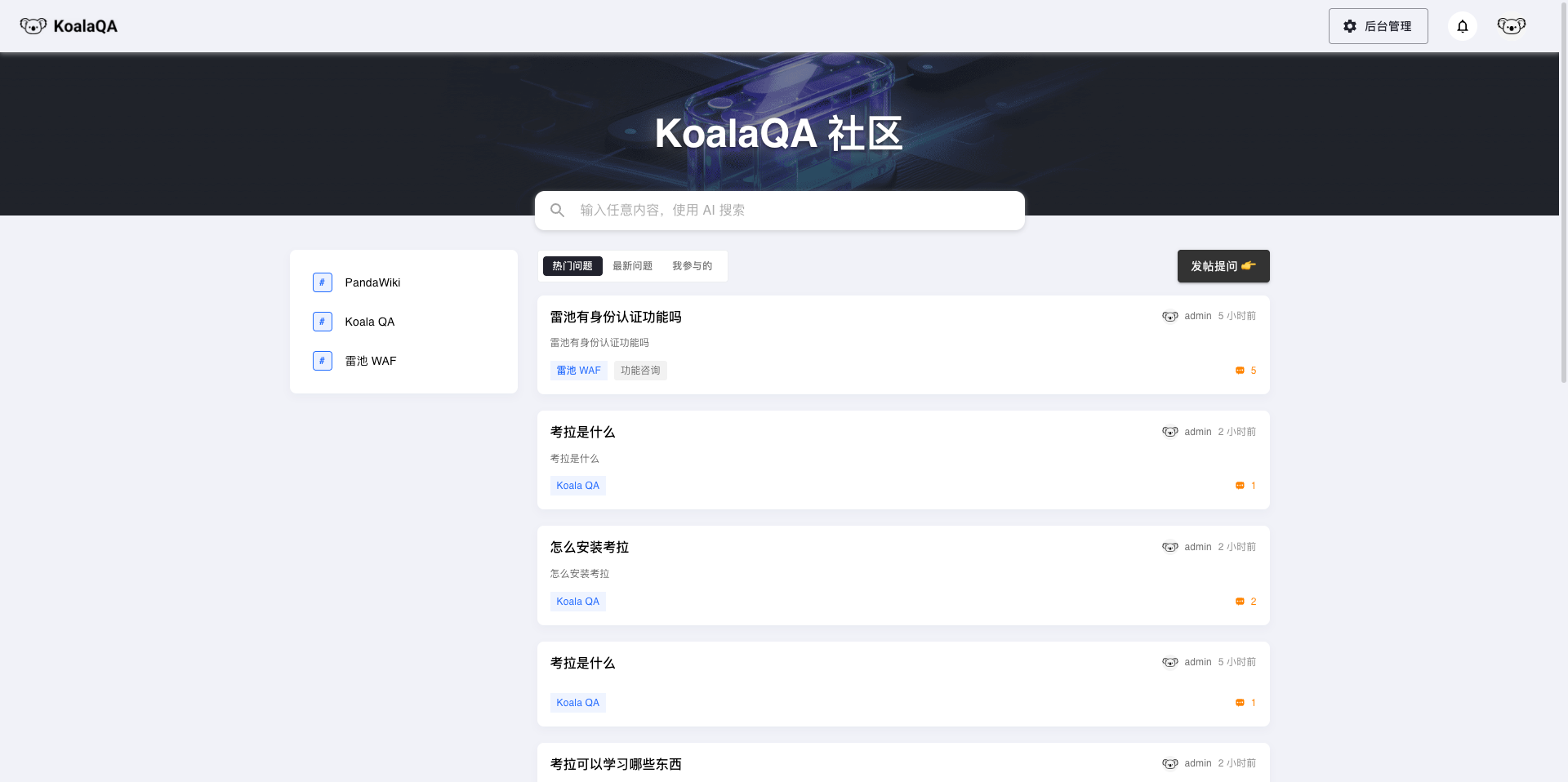 KoalaQA 支持学习问答对、在线网页、通用文档、第三方知识库等多种类型内容,例如:PandaWiki 知识库、钉钉知识库、飞书知识库等。