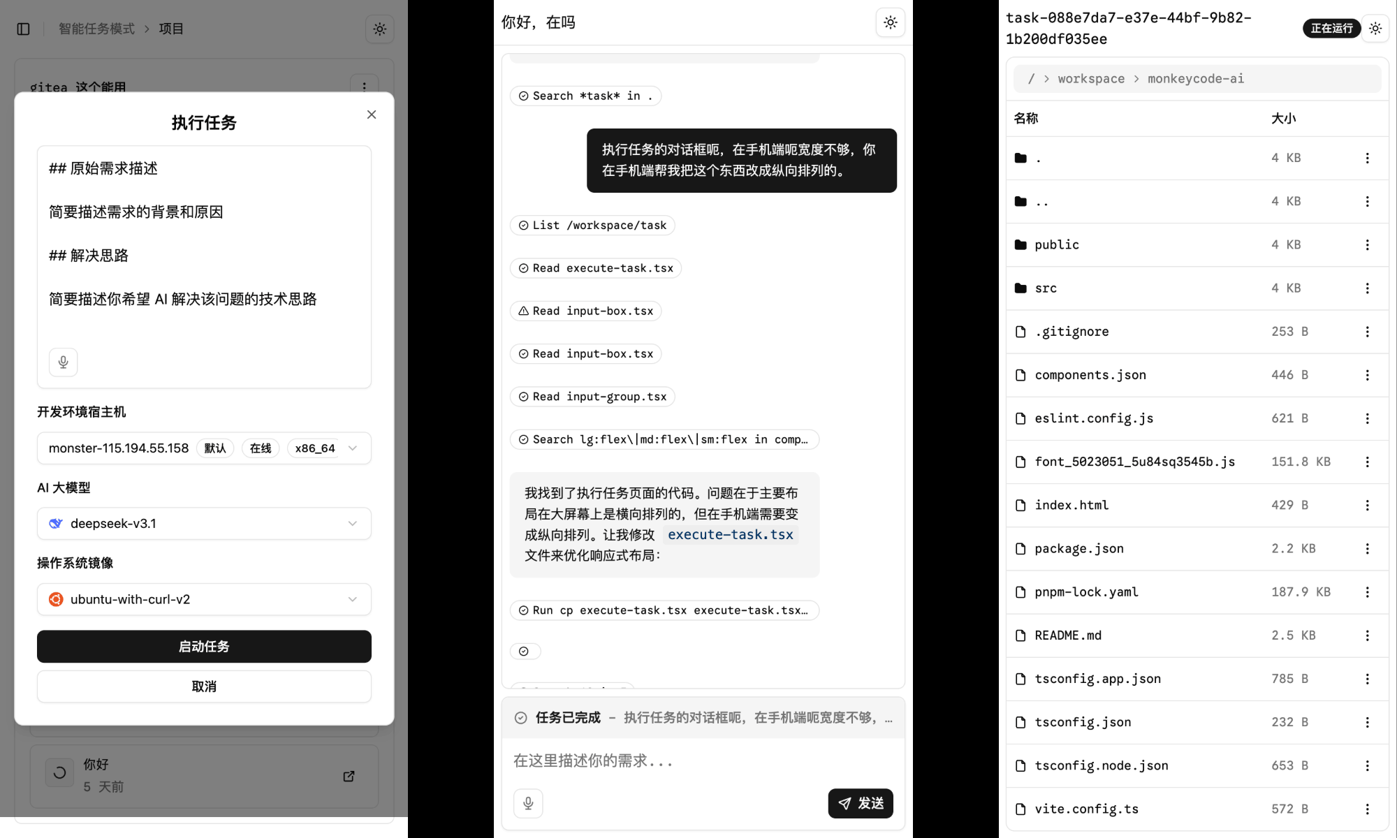 产品经理负责需求拆解,项目管理把控流程进度,研发工程师专注技术设计,AI 基于任务列表逐步执行开发。